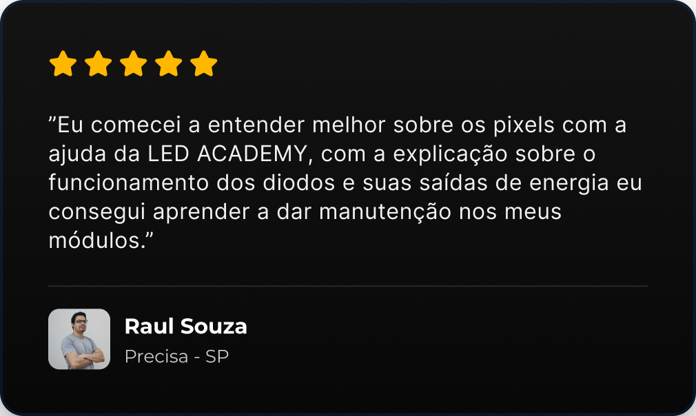 Veja o que nossos alunos estão falando do curso sobre paineis de led