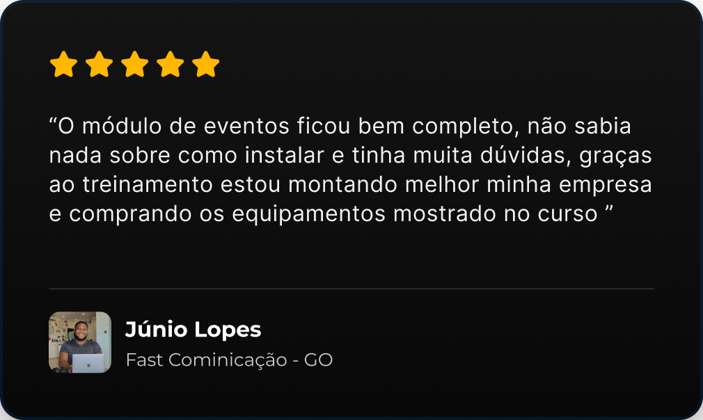 Neste módulo, você aprenderá como planejar, montar e operar painéis de LED para eventos, garantindo qualidade de imagem, segurança e eficiência durante as apresentações.